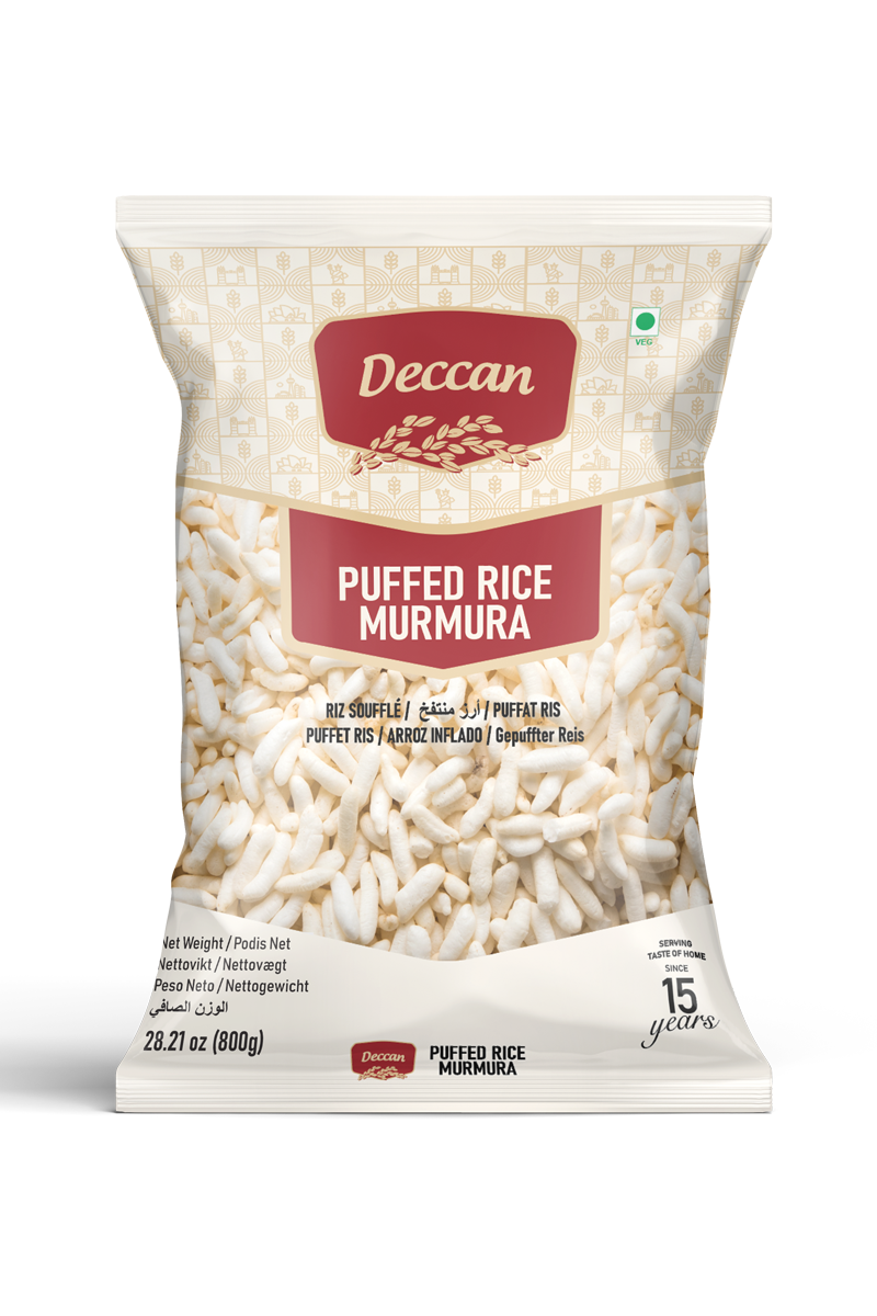 Light as air, crisp as a smile,  Deccan Murmura is made from select rice grains puffed to perfection. The taste of childhood snacks, festive chaats, and family evenings, it’s food that feels like memory itself.